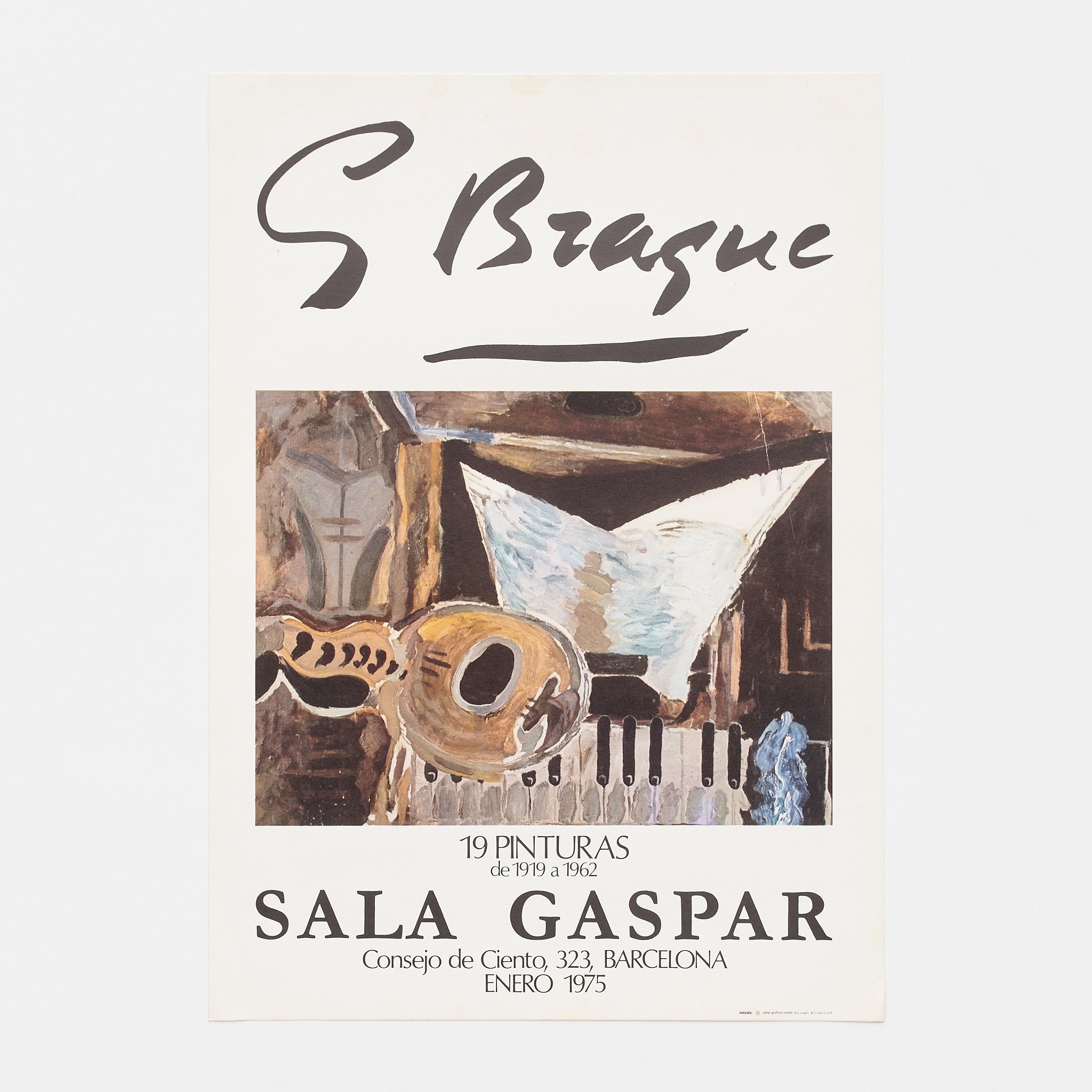 Original poster published on the occasion of the Georges Braque exhibition held at the Sala Gaspar, Barcelona.   Year: 1975 Dimensions: 69'5 x 49'5 cm Conservation: Due to its age it may present marks and slight damage